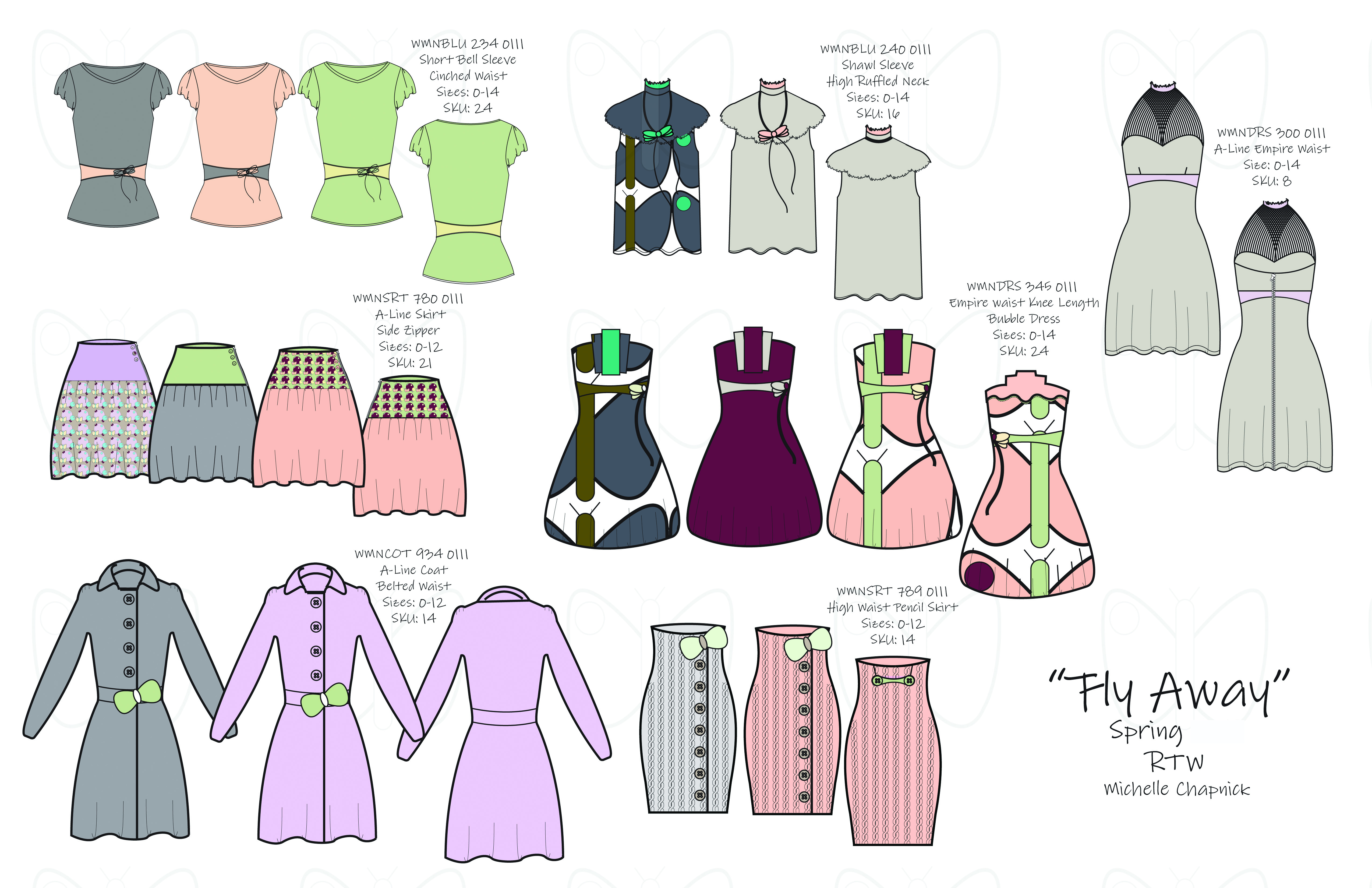 Technical Design flats and prints done in Illustrator.